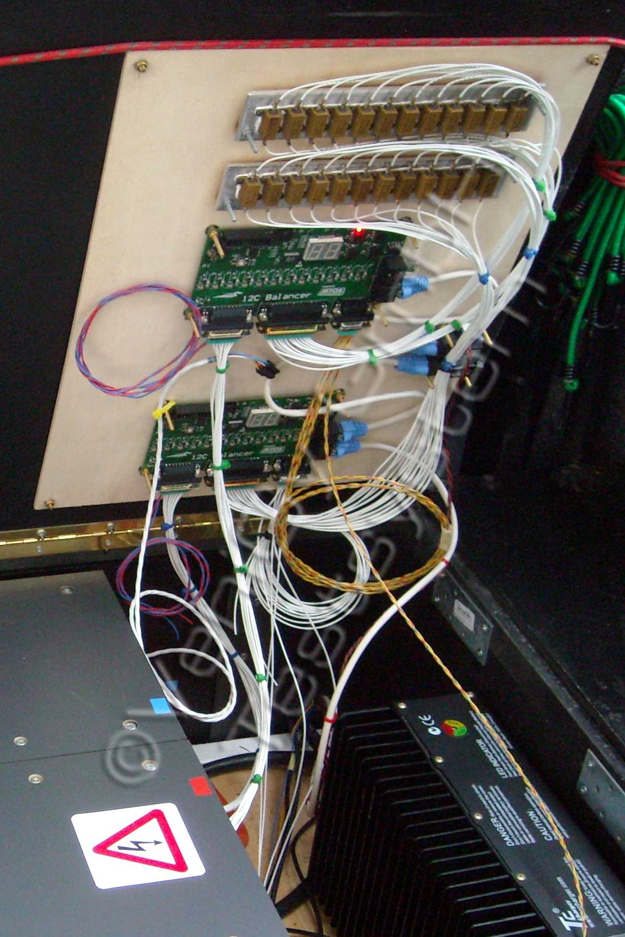 This picture presents the heart of the entire BMS. The two RiseonBMS can easily be spotted, still bearing the obsolete name "12C Balancer".